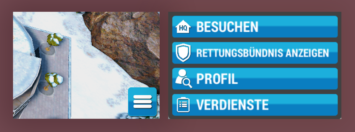 - Tippe während eines Basisbesuchs auf die Kachel mit den drei Linien unten links und wähle dort Verdienste aus.
